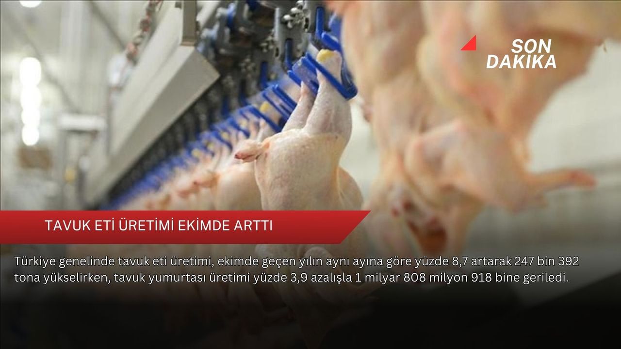 Buna göre, ekimde 247 bin 392 ton tavuk eti üretimi yapıldı. Üretim, yıllık bazda yüzde 8,7, aylık bazda yüzde 8,1 arttı.