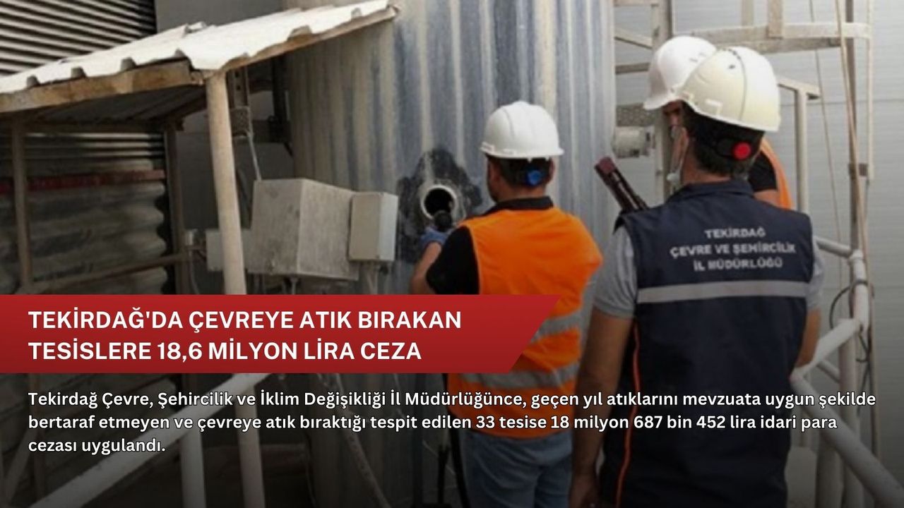 Müdürlük ekipleri, denetimlerde atıklarını mevzuata uygun şekilde bertaraf etmeyen ve çevreye atık bıraktığı tespit edilen 33 tesise 18 milyon 687 bin 452 lira idari para cezası uyguladı.