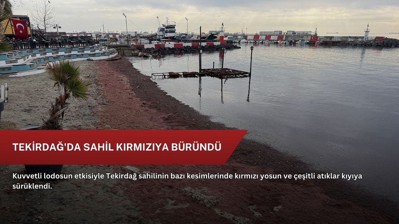 Sahildeki bazı alanlarda ise kırmızı yosun birikti.