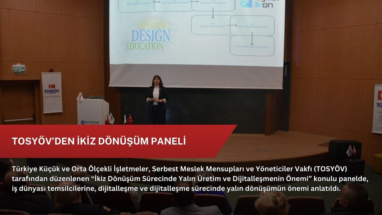 TOSYÖV Vakfı Yönetim Kurulu Başkanı Elif Ufluoğlu ise konuşmasında, “Bugün iş yaşamında verimin sağlanması için elzem olan iki kavramı konuşmak için bir araya geldik. Biz bu iki kavramı birbirinden ayıramamayı deneyimleyerek öğrendik. Şunu açıkça ifade etmek isterim ki artık dünyada sadece dijitalleşmeyi sağlayanların değil değişime uyum sağlayabilenlerin ayakta durduğu bir düzen işliyor. Dijitalleşme artık bir makine parkının yenilenerek, yeni bir yazılımı sisteme dahil etmekten ibaret değil. Tüm çalışmalara rağmen israf hala sürüyorsa ve dijitalleşme hızlı ama kontrolsüz bir karmaşa üretiyorsa, verimi getirecek zihinsel ve sistemsel dönüşümü sağlayacak her türlü gelişim desteklenmeli. TOSYÖV olarak bizler KOBİ’lerin dönüşüm yolunda yalnız bırakılmaması gerektiğini düşünüyoruz Çünkü KOBİ’ler ülkenin yüzde 95'ini oluşturan küçük, orta, büyük ya da büyük büyük ölçek işletmeler. Yani Türkiye'nin yüzde 95'i.Bizler TOSYÖV üyeleri olarak bu anlamda farkındalığı oluşturmak, ‘KOBİ’lerin ihtiyaçlarıyla ilgili çözümler üretecek verileri sahadan toplayarak işlemek gibi önemli görevlere sahibiz. Bu bilinç ve sorumlulukla çalışmalarımızı yürütüyoruz” şeklinde konuştu.