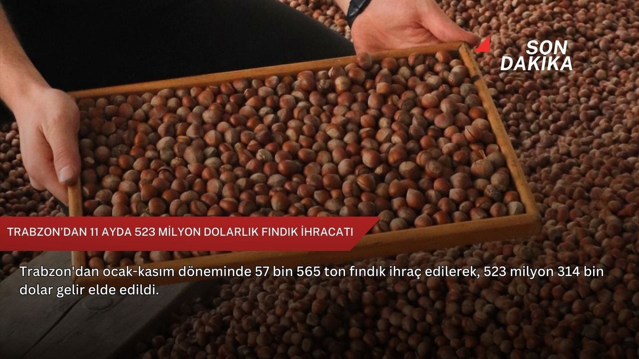 Trabzon'dan ise yılın 11 ayında 57 bin 565 ton fındık ihraç edildi, karşılığında 523 milyon 314 bin dolarlık döviz girdisi sağlandı, bir önceki yılın aynı dönemi ile kıyaslandığında ihracat miktarında yüzde 31, değerde ise yüzde 28 oranında düşüş yaşandı.