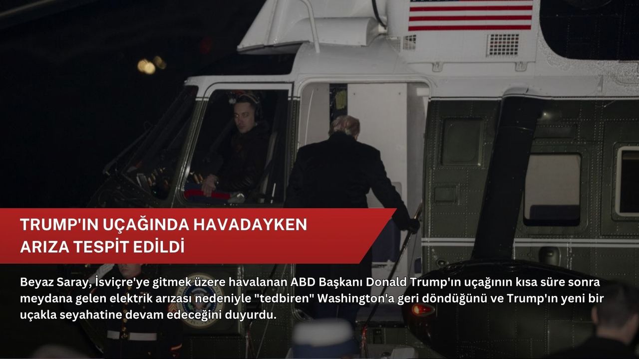 Trump'ın AF1 uçağının bir elektrik arızası nedeniyle "tedbir amaçlı" olarak Washington yakınlarındaki Joint Base Andrews Havalimanı'na geri döndüğünü belirten Leavitt, ABD Başkanı'nın yeni bir uçakla Davos seyahatine devam edeceğini söyledi.