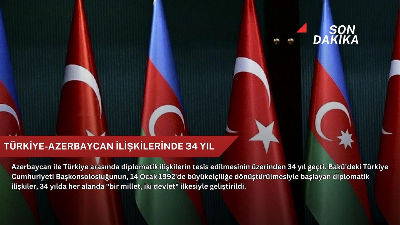 Azerbaycan'ın Sovyetler Birliği'nden bağımsızlığını kazanmasının ardından, 14 Ocak 1992'de Bakü'deki Türkiye Cumhuriyeti Başkonsolosluğunun büyükelçilik statüsüne yükseltilmesiyle başlayan diplomatik ilişkiler, geçen 34 yılda "bir millet, iki devlet" ilkesi temelinde istikrarlı biçimde geliştirilerek müttefiklik düzeyine taşındı.