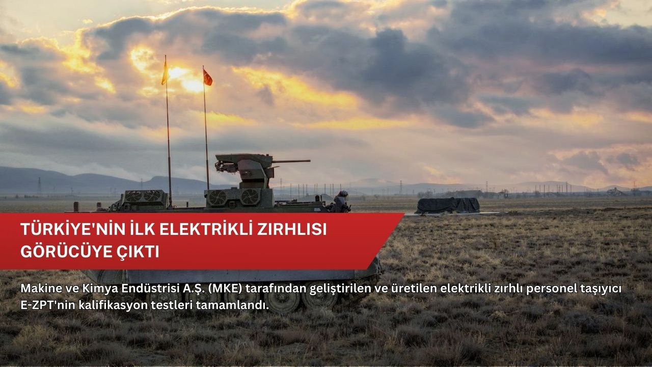 Çelik, aracın Mehmetçiğin sahadaki gücüne güç katacağını vurgulayarak, "E-ZPT, muharebe sahasını yakından takip ederek ve okuyarak oluşturduğumuz, yeni nesil teknolojilerle donattığımız aracımız. Tamamen elektrikli tahrik sistemine sahip. Bugün de ilk seri üretim aracın kabul testlerini tamamladık." ifadelerini kullandı.