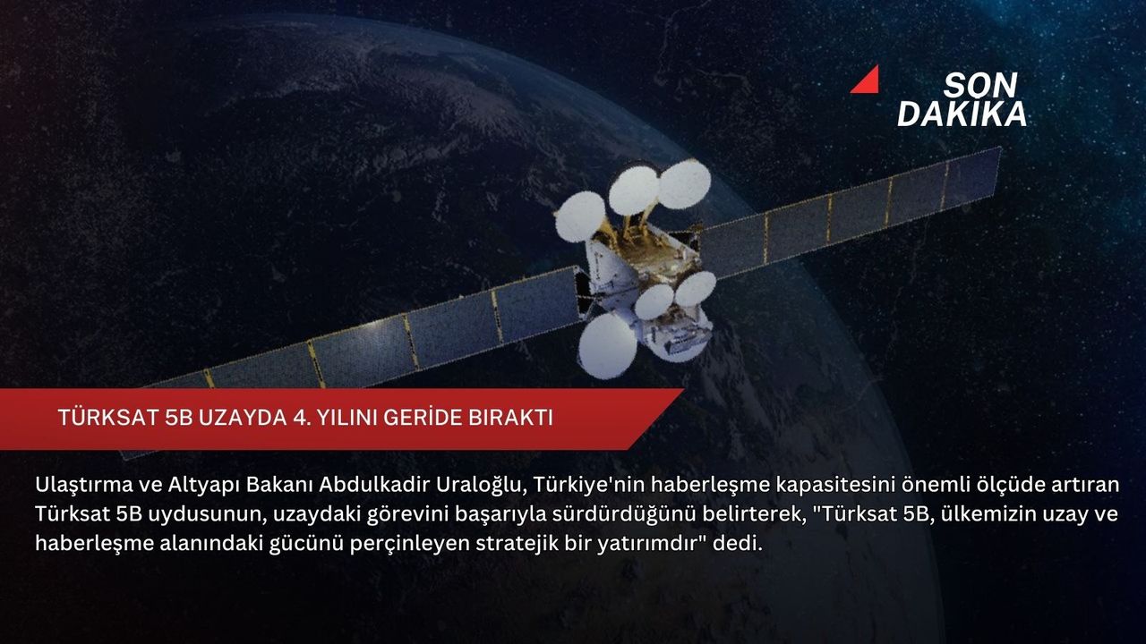 Bakan Uraloğlu, Türksat 5B'nin uzayda 4. yılını doldurduğunu ve 3,5 yıldır da hizmet verdiğini söyledi.