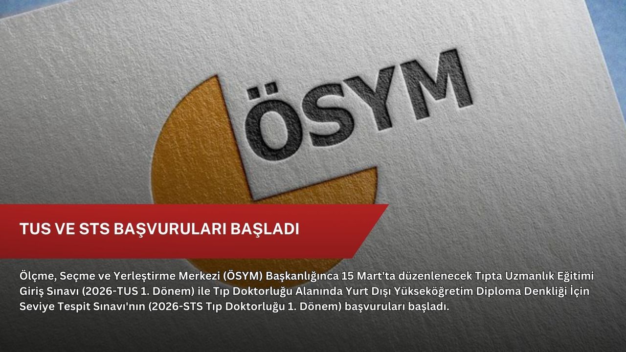 ÖSYM'nin internet sitesindeki duyuruya göre, bugün başlayan 2026-TUS 1. Dönem ile 2026-STS Tıp Doktorluğu 1. Dönem başvuruları, 5 Şubat'a kadar devam edecek.