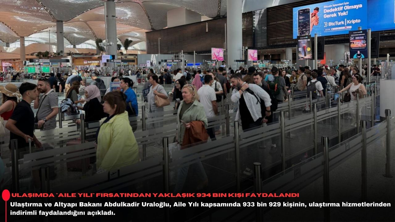 Cumhurbaşkanı Recep Tayyip Erdoğan tarafından, 2025'in "Aile Yılı" ilan edildiğini hatırlatan Uraloğlu, "Aile ve Sosyal Hizmetler Bakanlığı ile işbirliği içinde ailelerin ulaşım hizmetlerinden daha kolay ve ekonomik şekilde faydalanmalarını sağlamak için çeşitli düzenlemeleri hayata geçirdik. Aile Yılı kapsamında 933 bin 929 kişi ulaştırma hizmetlerinden indirimli faydalandı." ifadesini kullandı.
