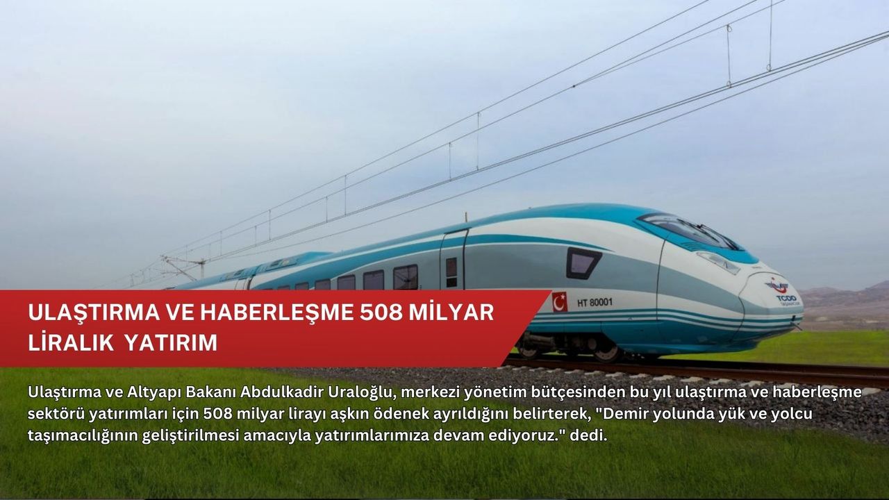"Bu yıl 508 milyar 166 milyon 500 bin liralık ulaştırma-haberleşme yatırımları listesinin ilk sırasında 261 milyar 580 milyon lirayla demir yolları bulunuyor. Demir yolu ulaştırmasında, TCDD Genel Müdürlüğüne 111 milyar 580 milyon lira, TCDD Taşımacılık AŞ'ye 38 milyar lira ve Bakanlığımız tarafından gerçekleştirilecek diğer demir yolu projelerine 112 milyar lira ayrıldı. Demir yolunda yük ve yolcu taşımacılığının geliştirilmesi amacıyla yatırımlarımıza devam ediyoruz. Türkiye'nin uluslararası yük koridorlarıyla olan bağlantısının güçlendirilmesi ve bölgede önemli bir lojistik merkezi haline gelmesi için çalışmalarımızı sürdüreceğiz."