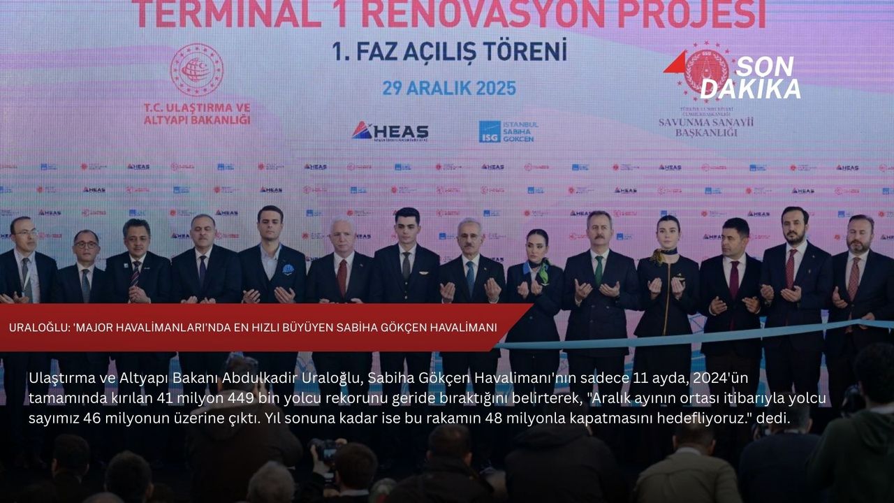 Uraloğlu, 2023'ün 11 ayında 33 milyon 716 bin yolcuya hizmet veren Sabiha Gökçen Havalimanı'nın, 2025'in aynı döneminde yüzde 31 artarak 44 milyon 217 bin yolcuya ulaşmış durumda olduğunun bilgisini paylaştı.