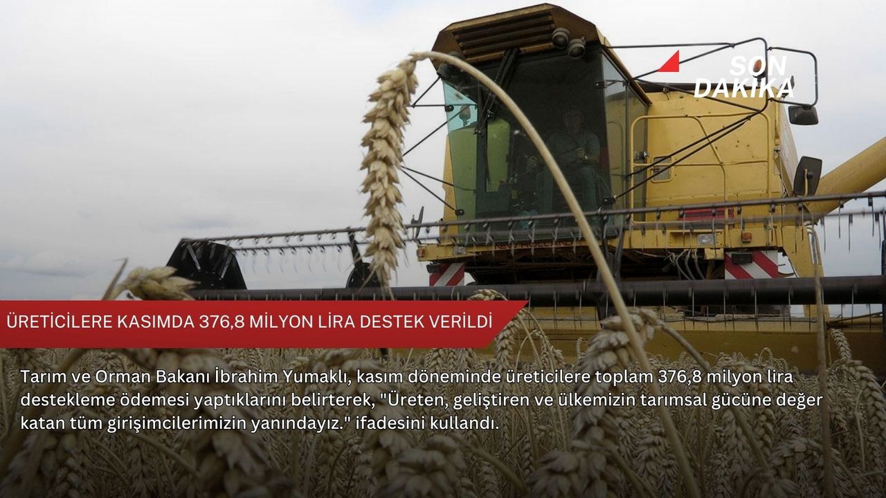 Programla girişimcilerin yanında olmaya devam ettiklerini vurgulayan Yumaklı, "Kasım dönemi kapsamında, çiftlik faaliyetlerinin çeşitlendirilmesinden teknik desteğe, işleme ve pazarlama tesislerinden tarımsal işletmelere kadar üreticilerimize toplam 376,8 milyon lira destekleme ödemesi yaptık. Üreten, geliştiren ve ülkemizin tarımsal gücüne değer katan tüm girişimcilerimizin yanındayız." değerlendirmesinde bulundu.