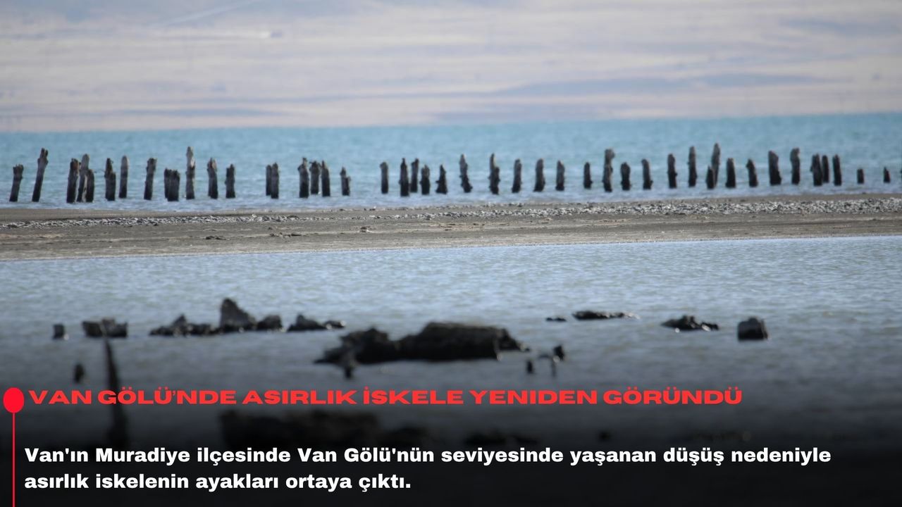 Muradiye ilçesine bağlı Ünseli Mahallesi'nde suyun çekilmesiyle ahşap iskelenin ayakları ortaya çıktı.