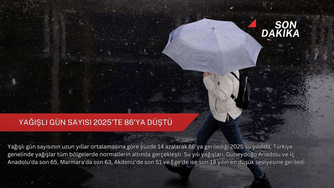 Türkiye'de uzun yıllar ortalama yağışlı gün sayısı 100 gün civarında kaydedilirken, 2025 su yılında Türkiye geneli yağışlı gün ortalaması 86 gün ile normalinin yüzde 14 altında gerçekleşti.