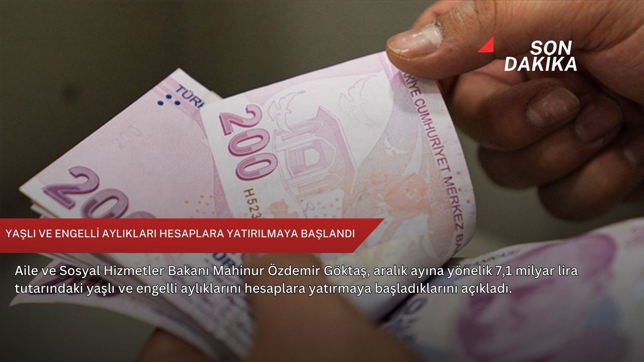 “Bu doğrultuda aralık ayı için yaklaşık 4 milyar lira yaşlı aylığı ve yaklaşık 3,1 milyar lira engelli aylığı olmak üzere toplam 7,1 milyar lira tutarındaki yaşlı aylığı ve engelli aylıklarını hesaplara yatırmaya başladık. Ödemelerin tüm vatandaşlarımıza hayırlı olmasını diliyorum.”