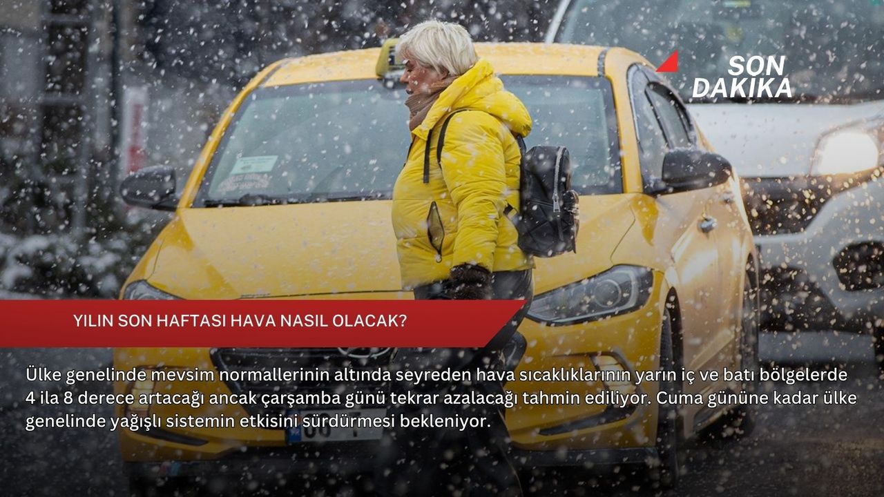 Yılın son günü Marmara'nın batısı hariç ülke genelini yağışlı geçecek. Yağışların Karadeniz, Ege ve Akdeniz kıyılarında yağmur, kalan tüm kesimlerde kar şeklinde olacağı öngörülüyor. Hava sıcaklıklarının yağışla birlikte yeniden mevsim normallerinin altına düşeceği tahmin ediliyor.