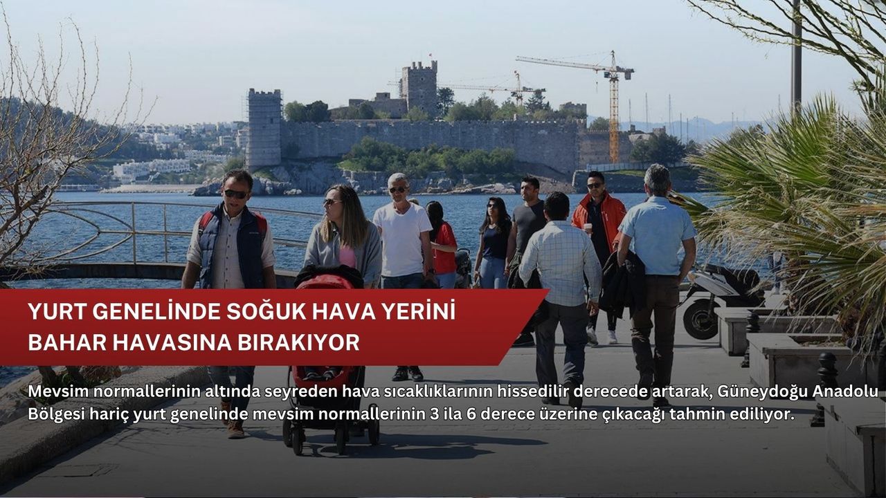 Sıcaklıkların Marmara, Ege, İç Anadolu ve Karadeniz bölgelerinde mevsim normallerinin 3 ila 6 derece üzerine çıkacağı öngörülürken; Güneydoğu Anadolu Bölgesi'nde ise sıcaklıkların mevsim normalleri civarında seyretmeye devam edeceği tahmin ediliyor.